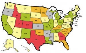 Please note: This map is the property of ArmedCampuses.org. The color of Georgia has been updated to reflect recent legislation, but if secondary legislation passes in the coming weeks limiting locations where firearms can be carried, Georgia will shift to being a grey state. Before all of this legislation, Georgia was an orange state, similar to Florida and South Carolina.
