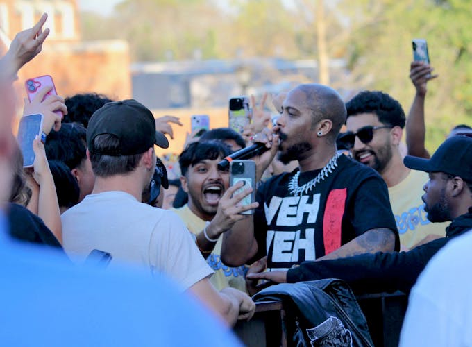 The band also utilized song transitions to get the crowd involved, including continuing a tradition from last year's Bearstock performance, which featured saxophonist and backup vocalist Micah Scott '27 reminiscing over a past breakup before launching into a rendition of Giveon's "TWENTIES."