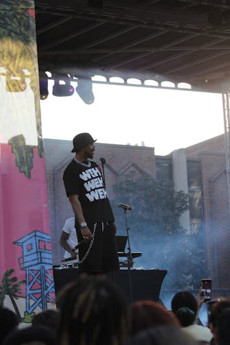 B.o.B. ended the six-and-a-half-hour concert with a variety of pop hits interspersed with some of his own solo music. He jumped into the crowd three separate times during his 45-minute set, passing out signed hats and set lists as well as trading sunglasses with a Mercer student in the front row of the pit. His list of crowd-favorites included Jessie J's "Price Tag" as a tribute to the 16-year anniversary of his debut album, which he dedicated to the "day one B.o.B. fans."