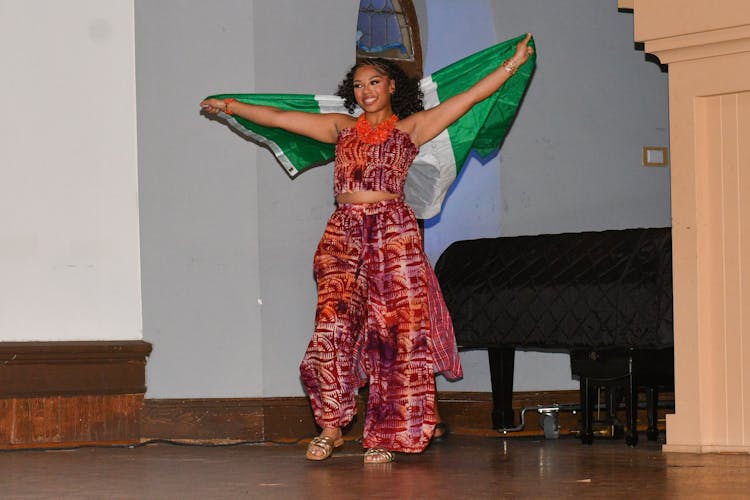 Peah performed a dance routine as a tribute to her grandparents. Dunbar followed with an original jazz solo to “Grown Woman” by Beyonce. Mungbet Nku closed the talent with another track by Beyonce as she sang “Pretty Hurts.”